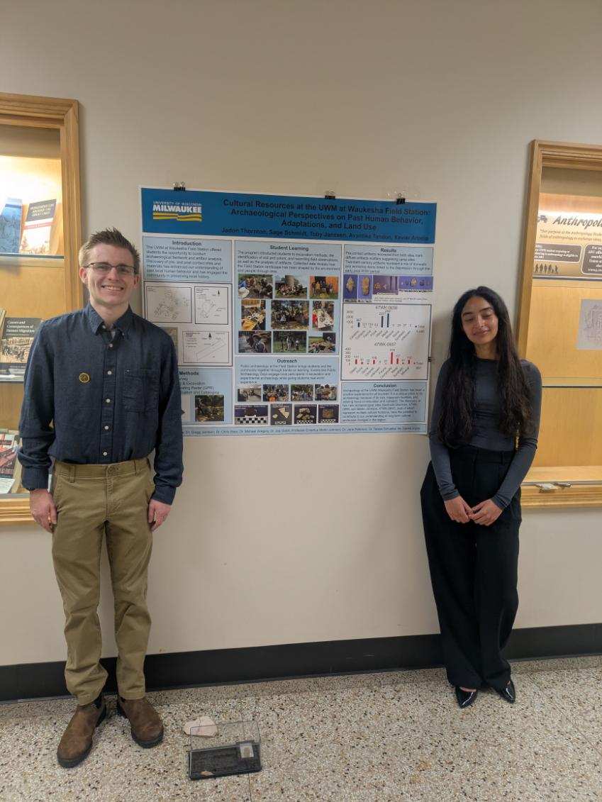 - Anthropology Undergrads Well-Represented at Student Research SymposiumFrom the Left: Nora Fitak, Kaitlyn Lund, Dr. Shannon Freire, Elsie Touchstone, Samantha Dancyzk, Gil Amador Anthropology student researchers were well-represented at this year's UWM Student Research Symposium. Anthropology students presented 17 papers and posters this year. Topics included Human and Animal Osteology, Mapping, Museum Studies, and Archaeology overseen by six …
