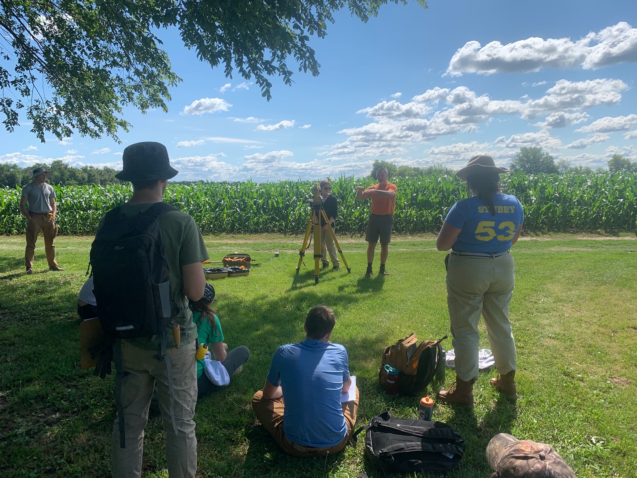 Figure 1. Brian Nicholls instructing the field school students on the use of the Total Data Station (TDS) to use for mapping an archaeological site.