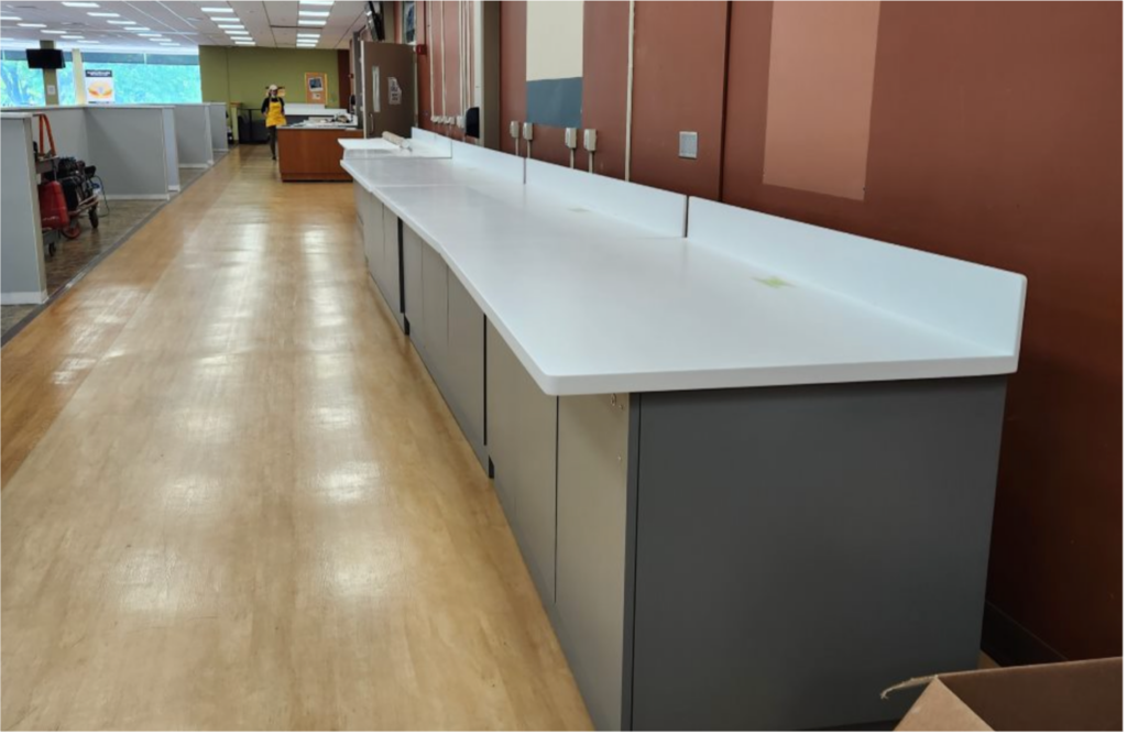 The Sandburg Café facelift is underway! New Counters, yes. New Cabinets, done. New Paint…coming soon