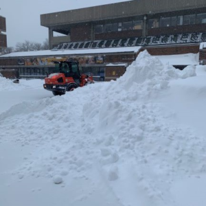 The Grounds team plows parking lots and sidewalks while the Environmental Services staff clears snow from the building entrances, including steps and ramps. The snow has been relentless this year and the Grounds and Environmental Services staff have worked weekends, early mornings, late nights, sometimes both in the same day, and battled extremely cold temperatures to ensure snow is cleared and we can safely navigate sidewalks and parking lots.