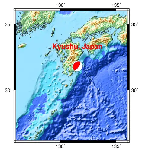 | Location: Kyushu, Japan | P-wave: 12:33:00 UTC; 6:33:00 am CST |