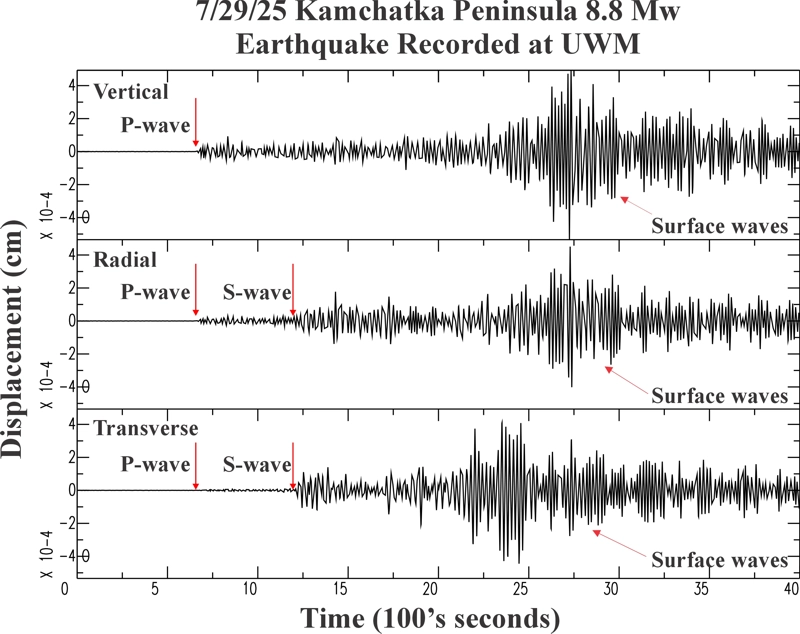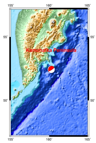 | Location: Kamchatka Peninsula | P-wave: 23:35:47 UTC; 6:35:47 PM CDT |