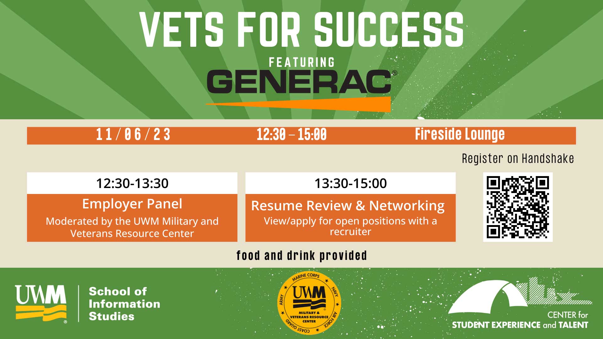 Join us for an employer panel with Generac moderated by the UWM Military and Veterans Resource Center. This panel will be followed by resume reviews and networking. Candidates will have the opportunity to view and apply for open positions with Generac! In addition, lunch will be provided!