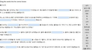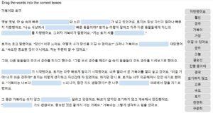 H5P Sogang Korean 2B Based Reading Comprehension Unit 4 Version 1 Drag the Words