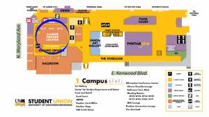 - UWM Union, campus level (including Alumni Fireside Lounge)