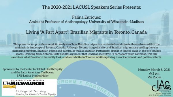 LACUSL Speaker Series: “Living ‘A Part Apart’: Brazilian Migrants in Toronto, Canada”