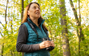 Geographer Alison Donnelly is using UWM’s Downer Woods to test the accuracy of a satellite that tracks Earth’s vegetation.