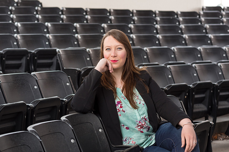A theater arts major, Anna Evans was hired full-time at First Stage Children's Theater in administrative support. She says her theater professors at UWM have been essential in finding job opportunities in the field. (UWM Photo/Elora Hennessey)