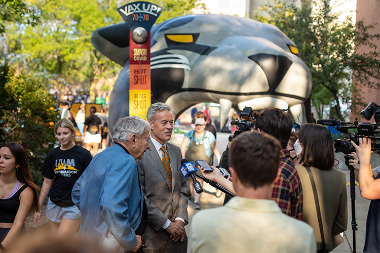 UW System President Tommy Thompson came to UWM on Friday to promote the UW System’s 70 for 70 campaign and to encourage everyone to get vaccinated for COVID-19.