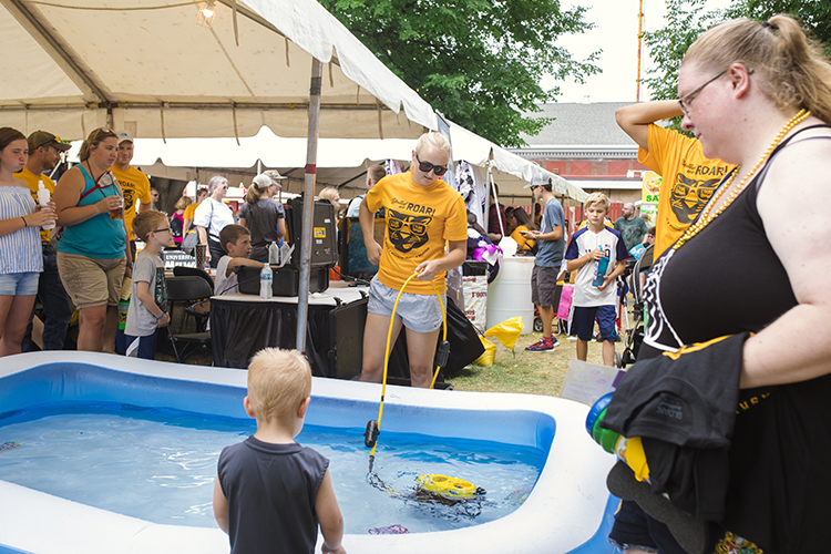 Milwaukee Athletics offers fairgoers a chance to show off their skills with some cornhole competition. (UWM Photo/Elora Hennessey)