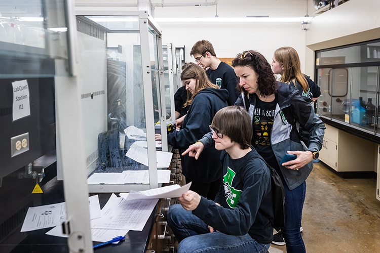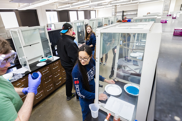 Several hundred middle and high school students came to UWM March 31 for a STEM Expo, where they got to conduct experiments to learn about chemistry, and also toured campus, visited research labs and sat in on lectures.