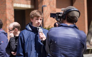 Presidential candidate Donald Trump drew more than 500 people to UWM on Sunday – some to watch him tape a town hall hosted by FOX News Channel, and others to protest.
