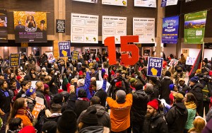 The Democratic primary debate was broadcast live from the Zelazo Center, but much of the action Feb. 11 took place across the street in the UWM Student Union.
