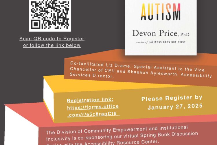 Register at this link by Friday, Jan. 31. The series is co-sponsored by the Division of Community Empowerment and Institutional Inclusivity and the Accessibility Resource Center.
