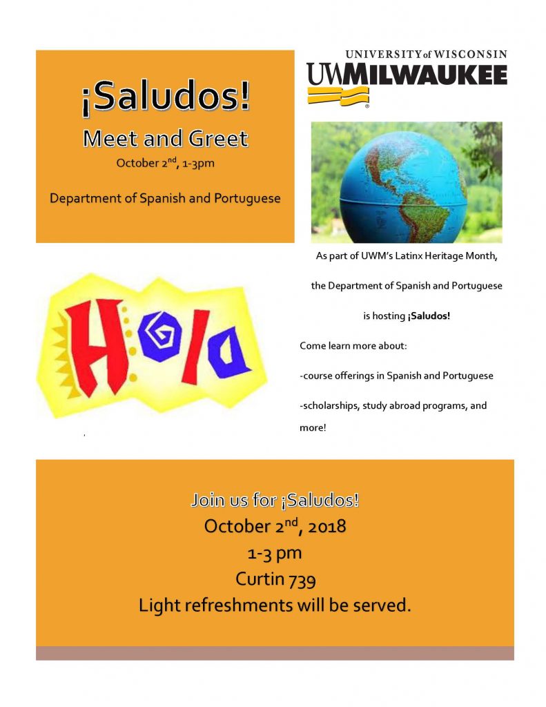 As part of the UWM’s Latinx Heritage Month, the UWM Department of Spanish and Portuguese is hosting ¡Saludos!