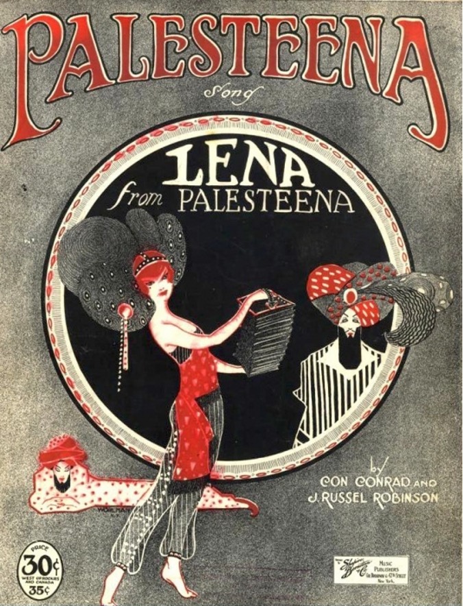 - “Palesteena”: https://en.wikipedia.org/wiki/Palesteena. The song’s first stanza reads: “In the Bronx of New York City / Lived a girl, she’s not so pretty; / Lena is her name. / Such a clever girl is Lena! / How she played her concertina, / Really, it’s a shame.” Its klezmer-inflected music was composed by J. Russell Robinson. ↩︎